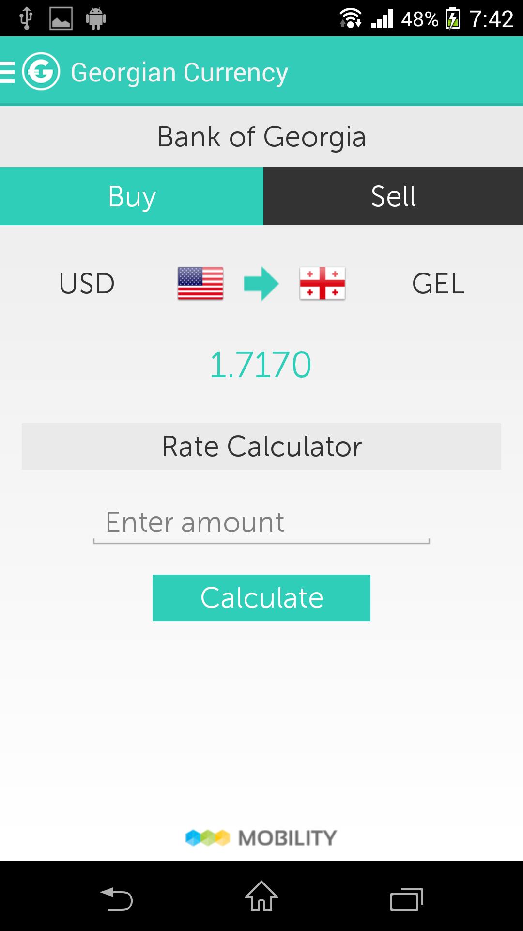 Taxas de câmbio do Banco Nacional da Geórgia e outros bancos comerciais da Geórgia de/para/para a georgiana Lari (gel)